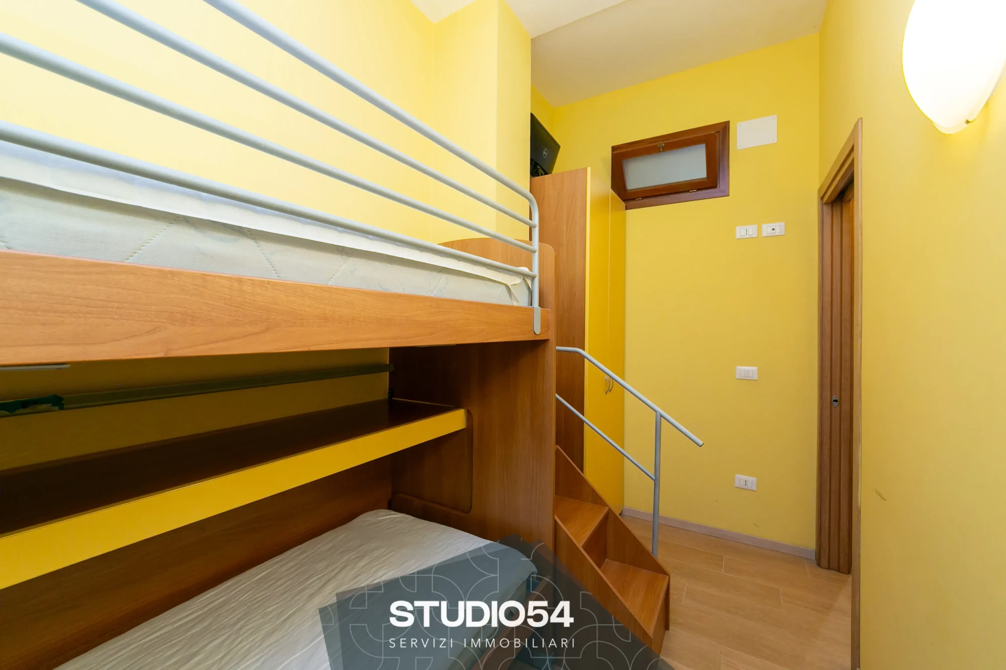 L’ingresso si apre su una zona giorno open space con cucina a vista, ambiente accogliente e luminoso grazie all’ampia porta finestra. L’appartamento dispone di una camera matrimoniale con possibilità di aggiungere un terzo letto, una stanza più piccola attualmente utilizzata come singola o ripostiglio e un bagno con finestra.